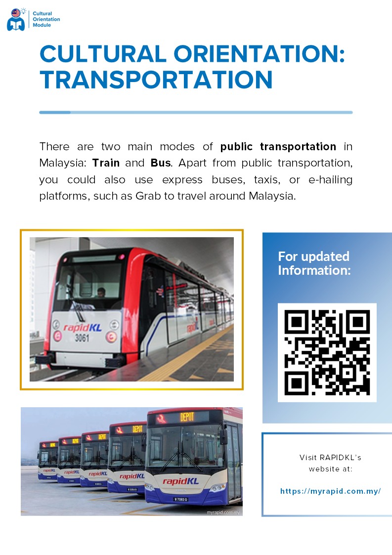 أثناء العيش في ماليزيا، من المهم للاجئين وطالبي اللجوء أن يتعلموا الثقافة والعادات والقانون الماليزي. وهذا من شأنه تعزيز الاحترام المتبادل وتجنب سوء الفهم بين اللاجئين وطالبي اللجوء والسكان المحليين. إن فهم الثقافات والأديان والعادات والقوانين الأخرى في بلد العبور من شأنه أيضًا أن يسهل عملية الإندماج في البلدان الأخرى.